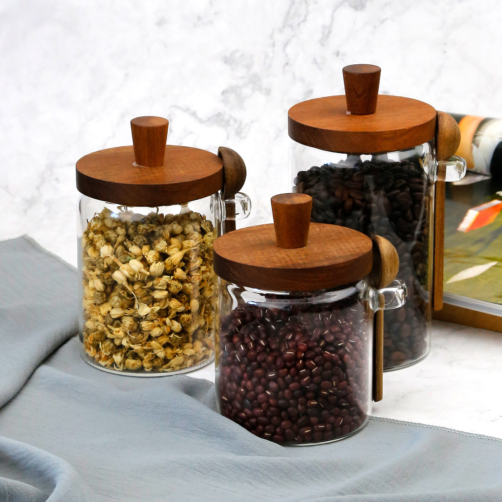 Home > 1 Pcs 18.5 OZ Glass Coffee Jars With Spoons, Candy Jars, Biscuit Jars, Storage Jars, Tea Jars, Snack Jars, Seasoning Jars, Salt Jars, Pepper Jars