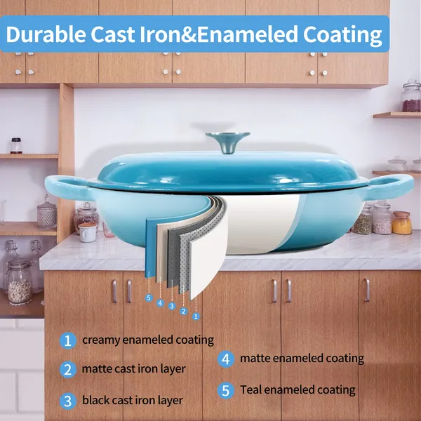 • Suitable for Gifts: Made of premium cast iron material, coating with high gloss enamel surface and white enamel interior layer, which is durable and non-stick. If you have questions, CONTACT US through Amazon or email us. Our professional customer service will assist you 24/7.So you can enjoy your p