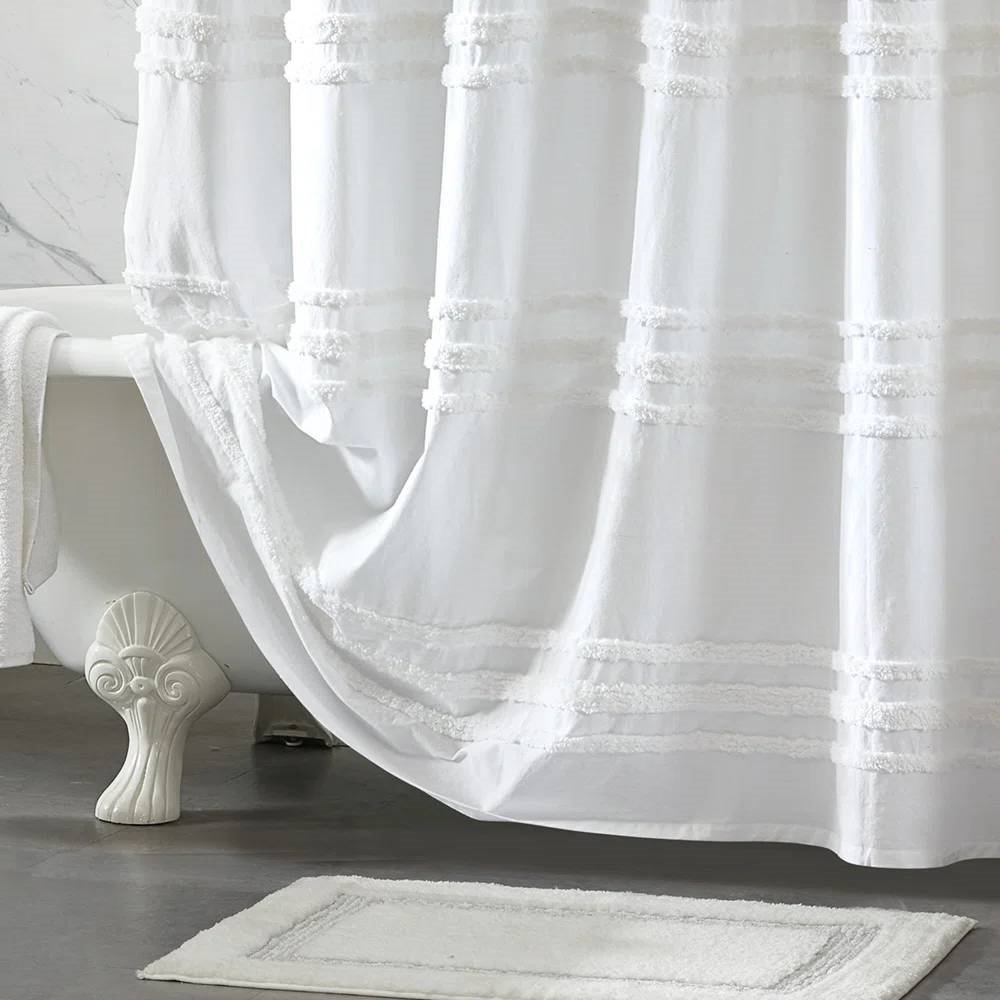 72-inch White Cotton Chenille Stripe Shower Curtain - Machine Washable 72-inch White Cotton Chenille Stripe Shower Curtain - Machine Washable 72-inch White Cotton Chenille Stripe Shower Curtain - Machine Washable 72-inch White Cotton Chenille Stripe Shower Curtain - Machine Washable