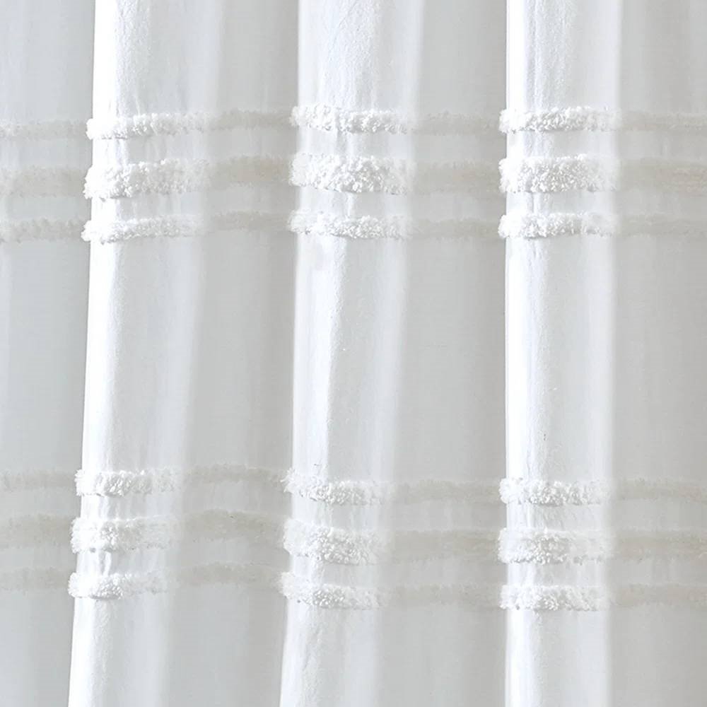 72-inch White Cotton Chenille Stripe Shower Curtain - Machine Washable
