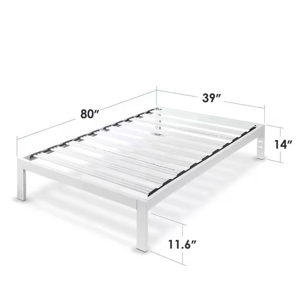 Twin XL size Wide-Slat White Metal Platform Bed Frame with Headboard Brackets