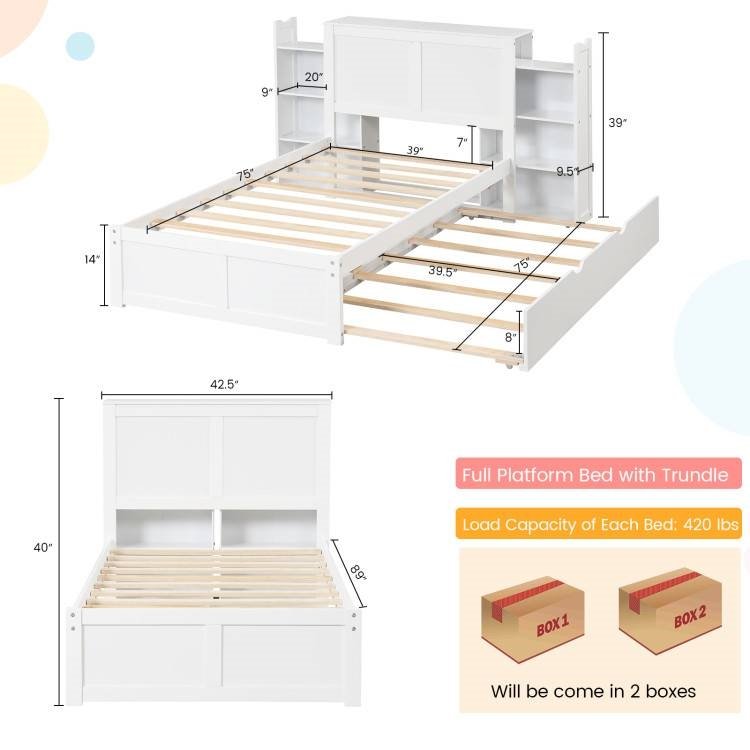 Twin/Full Wood Platform Bed w/ Trundle and Storage Bookcase Headboard in White Twin/Full Wood Platform Bed w/ Trundle and Storage Bookcase Headboard in White Twin/Full Wood Platform Bed w/ Trundle and Storage Bookcase Headboard in White Twin/Full Wood Platform Bed w/ Trundle and Storage Bookcase Headboard in White Twin/Full Wood Platform Bed w/ Trundle and Storage Bookcase Headboard in White