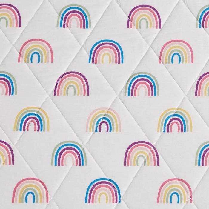 Full/Queen 3 Piece Pink White Stripe Reversible Rainbows Cotton Quilt Set
