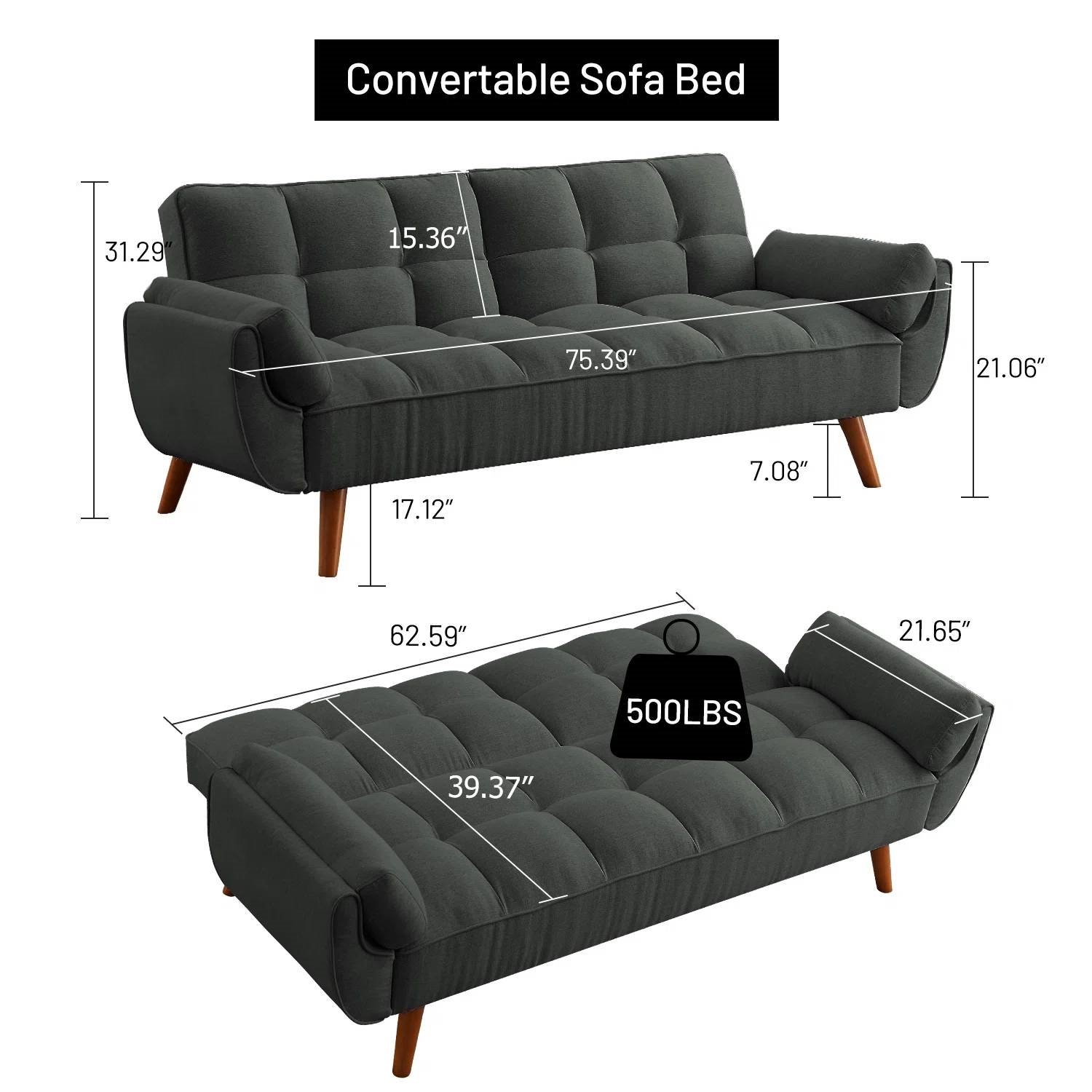 Mid-Century Modern Sofa Bed in Dark Grey Linen Polyester Tufted Upholstery Mid-Century Modern Sofa Bed in Dark Grey Linen Polyester Tufted Upholstery Mid-Century Modern Sofa Bed in Dark Grey Linen Polyester Tufted Upholstery Mid-Century Modern Sofa Bed in Dark Grey Linen Polyester Tufted Upholstery Mid-Century Modern Sofa Bed in Dark Grey Linen Polyester Tufted Upholstery