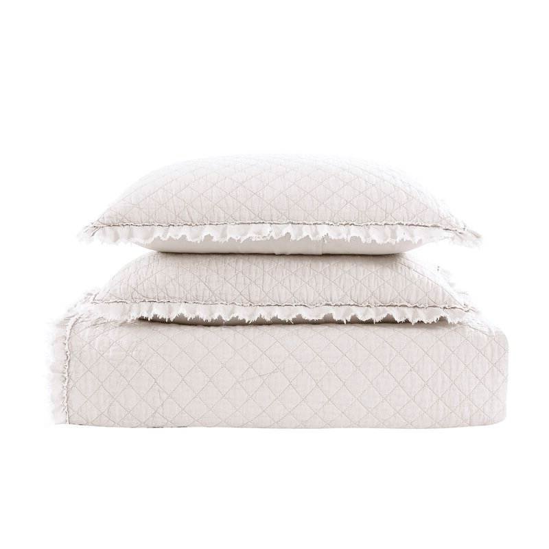 King White Farmhouse Microfiber Diamond Quilted Bedspread Set with Frayed Edges