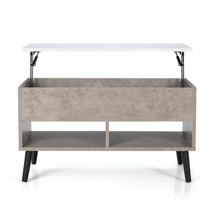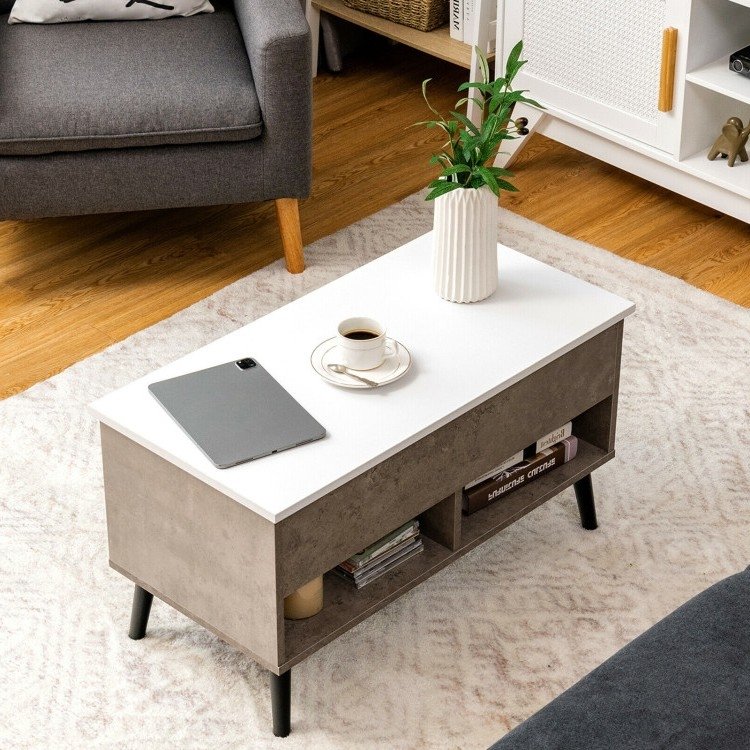 Mid-Century Lift-Top Coffee Table Sofa Laptop Desk in Grey Wood White Top Finish
