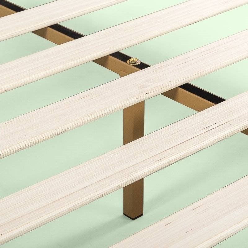 King size Modern Wood Platform Bed Frame with Headboard in Medium Brown
