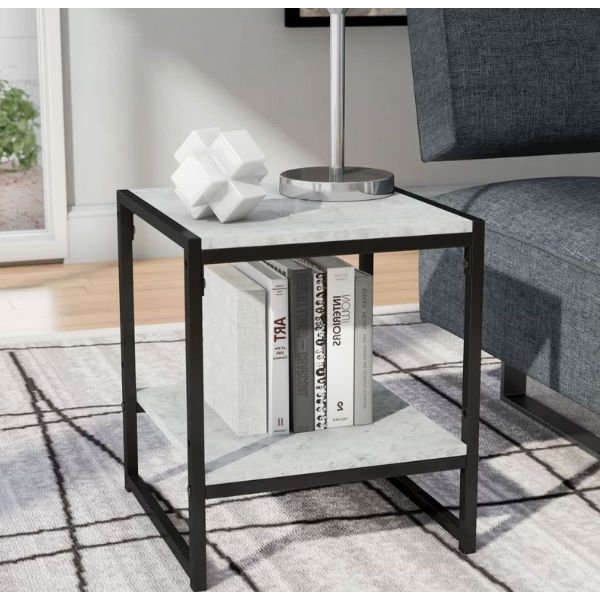 Modern Metal Frame End Table Nightstand with Faux Stone Top and Bottom Shelf Modern Metal Frame End Table Nightstand with Faux Stone Top and Bottom Shelf Modern Metal Frame End Table Nightstand with Faux Stone Top and Bottom Shelf