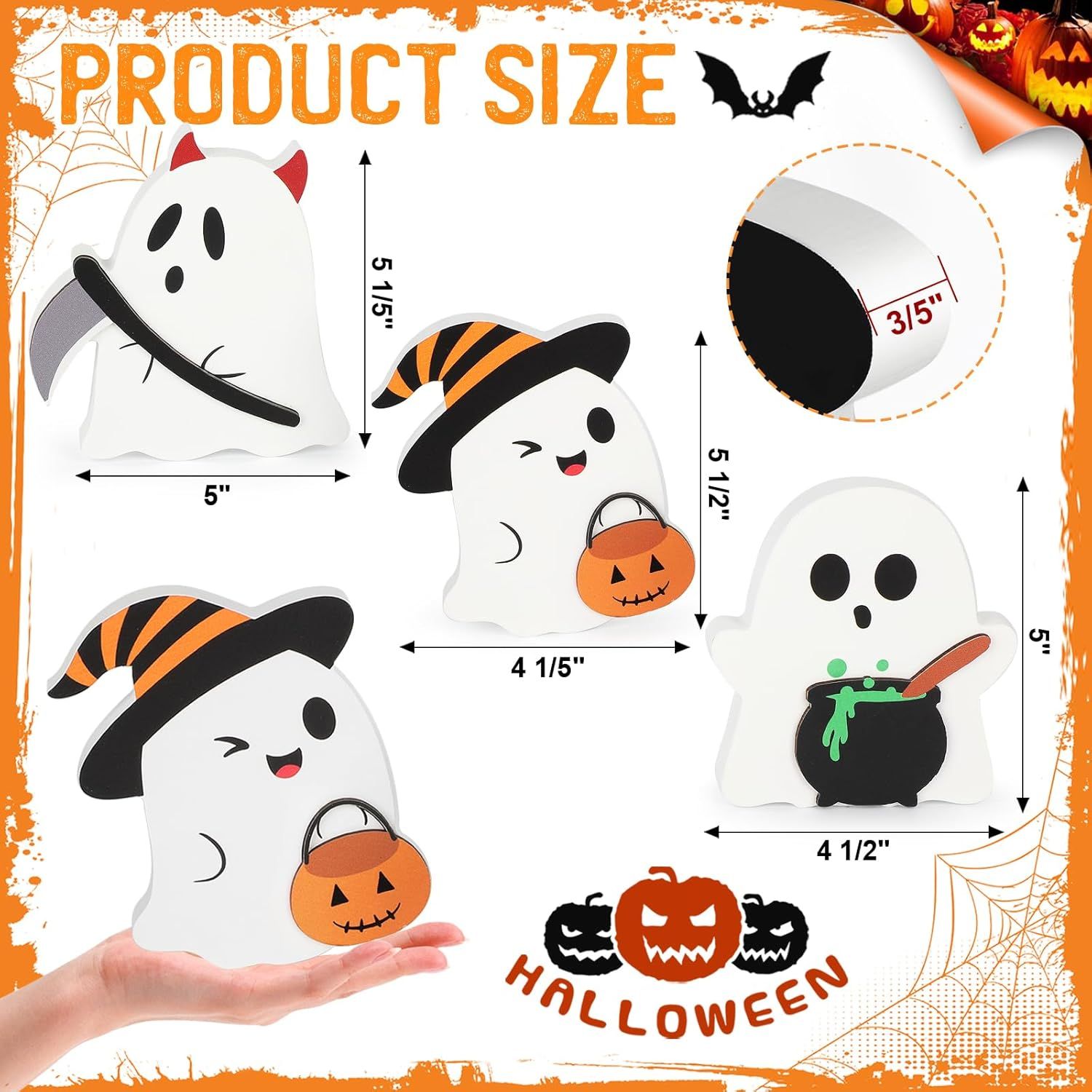 Super Cute Halloween Decorations - The package comes with 3 styles pieces of cute ghost wooden tiered tray decorations and also features Halloween elements such as pumpkins, black cats, bats, and witches brooms, bringing you a simple, classic, but not exaggerated feeling.Wonderful Size for Tiered Tray - Our cute Halloween signs' are vary in size, the length and width are approximately 4", 5". It is very suitable for decorating your tiered tray, table center, shelf, office, and anywhere you want to decorate.Sturdy & Quality Material - Our decorative tiered tray signs are made of quality wooden material. you can use it to add a strong Halloween atmosphere.Bright Color Block - Our adorable wooden signs are painted in bright colors, white cute wooden ghost table decor ideal for styling a tiered tray.Great Holiday Gift - Chic and cute appearance look makes this Halloween signs ornament to be a great choice as a gift to your family, friends, relatives, and others. Apply kids children baby Adult Students Boy Girl Teenagers Home Decor.